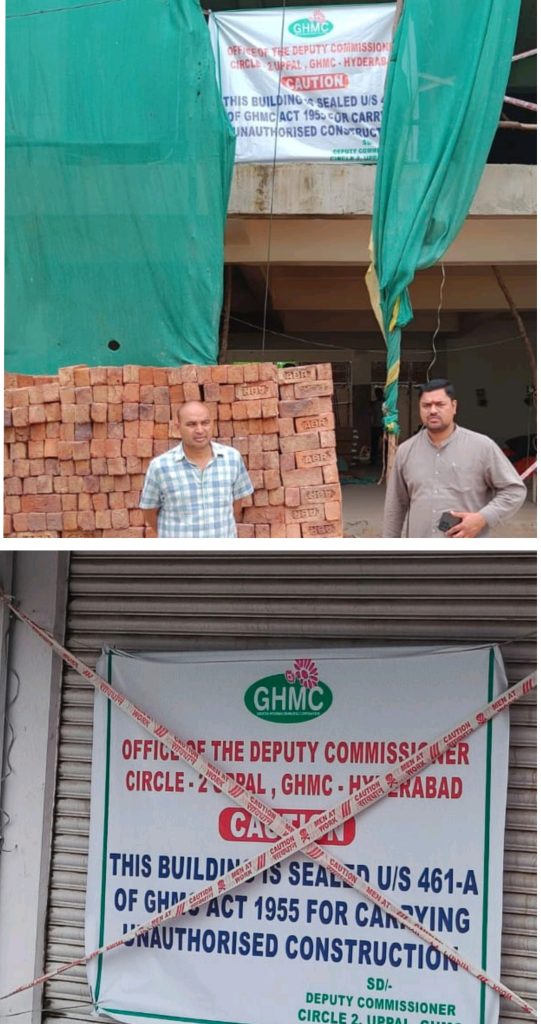 ఉప్పల్ న్యూస్ – ఉప్పల్ సర్కిల్ పరిధిలోని జీహెచ్ఎంసీ అధికారులు, ముఖ్యంగా టౌన్ ప్లానింగ్ అధికారులు, అక్రమ నిర్మాణాలపై ఉక్కుపాదం మోపుతూ, అలాంటి కట్టడాలను సీజ్ చేయడం, కూల్చివేయడం వంటి చర్యలు తీసుకుంటున్నారు. అందులో భాగంగా గురువారం నాడు ఉప్పల్ మున్సిపల్ సర్కిల్ పరిధిలోని రామంతపూర్ ఉప్పల్ భగయత్ లోని అనేక అక్రమ కట్టడాలను టౌన్ ప్లానింగ్ అధికారులు సీజ్ చేయడం జరిగింది రామంతపూర్ డివిజన్ శారద నగర్ లో అక్రమంగా నిర్మించిన బిల్డింగ్ ని సీజ్ చేసిన ఉప్పల్ టౌన్ ప్లానింగ్ అధికారులు పరిమిషన్ కు విరుద్ధంగా నిర్మించిన భవన కావడంతో అధికారులు పరిశీలించి సీజ్ చేయడం జరిగినది అదేవిధంగా ఉప్పల్ బగాయత్తులోని పలు అక్రమ నిర్మాణాలను సీజ్ చేయడం జరిగినది ఉప్పల్ టౌన్ ప్లానింగ్ ఏసిపి కృష్ణమూర్తి ఆధ్వర్యంలో టిపిఎస్ తుల్జా సింగ్ సిబ్బంది అక్రమ నిర్మాణ బిల్డింగుల ను సీజ్ చేశారు. ఇది ఇలా ఉంటే ఉప్పల్ భగాయత్ లో అక్రమంగా నిర్మించిన షెడ్లను ఎప్పుడు సీజ్ చేస్తారని ప్రజలు ప్రశ్నిస్తున్నారు