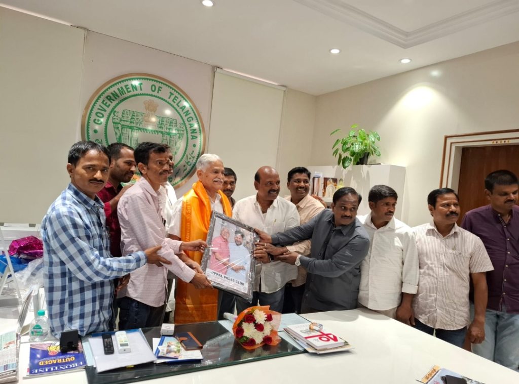 ఉప్పల్, మార్చి 5 : ఉప్పల్ ప్రెస్ క్లబ్ కు తన వంతు సహకారం అందజేస్తామని తెలంగాణ మీడియా అకాడమీ చైర్మన్ కే.శ్రీనివాస్ రెడ్డి అన్నారు. తెలంగాణ యూనియన్ అఫ్ వర్కింగ్ జర్నలిస్ట్ (TUWJ) మేడ్చల్ జిల్లా అధ్యక్ష, కార్యదర్శి గడ్డమీది బాలరాజు, దొంతుల వెంకట్రాంరెడ్డి, ఉప్పల్ నియోజకవర్గం అధ్యక్షులు పల్లా మహేందర్ రెడ్డి ఆధ్వర్యంలో తెలంగాణ మీడియా అకాడమీ చైర్మన్ శ్రీనివాస్ రెడ్డి ని గురువారం నూతనంగా ఎన్నికైన ఉప్పల్ ప్రెస్ క్లబ్ ప్రతినిధులు కలిశారు. ఈ మేరకు రెండవసారి చైర్మన్ గా ఎన్నికైన సందర్బంగా మీడియా అకాడమీ కార్యాలయంలో కలిసి పుష్పగుచ్చచం అందజేసి, శాలువా తో సత్కరించారు. అనంతరం క్లబ్ అధ్యక్షులు వి.తిరుపతి రెడ్డి, కార్యదర్శి జి.శివాజీ లు కలిసి సీఎం రేవంత్ రెడ్డి , ప్రెస్ అకాడమీ చైర్మన్ శ్రీనివాస్ రెడ్డితో కూడిన మెమెంటో అందజేశారు. ఈ సందర్బంగా అయన మాట్లాడుతూ జర్నలిస్టుల సంక్షేమం కోసం తన వంతు సహకారం అందజేస్తామన్నారు. ఉప్పల్ ప్రెస్ క్లబ్ చేస్తున్న సంక్షేమ కార్యక్రమాలను అభినందించారు. జర్నలిస్టుల సంక్షేమానికి కృషి చేయాలని సూచించారు..ఈ కార్యక్రమం లో ఉప్పల్ ప్రెస్ క్లబ్ అధ్యక్షులు వేముల తిరుపతి రెడ్డి, ప్రధాన కార్యదర్శి గ్యారంపల్లి శివాజీ, వర్కింగ్ ప్రెసిడెంట్ పారెల్లి సాగర్, ఉపాధ్యక్షులు శ్రీధర్ రావు, నరోత్తం రెడ్డి, కోశాధికారి గుత్తి శేఖర్, జాయింట్ సెక్రటరీ దాస రాజు, ఓ.రమేష్ పాల్గొన్నారు.